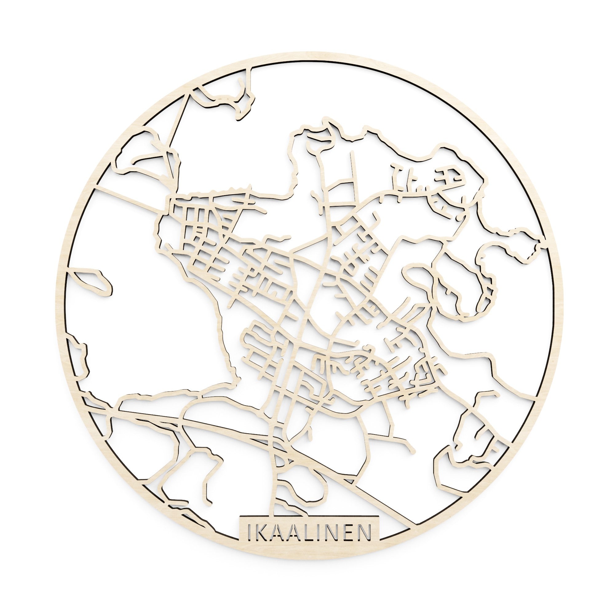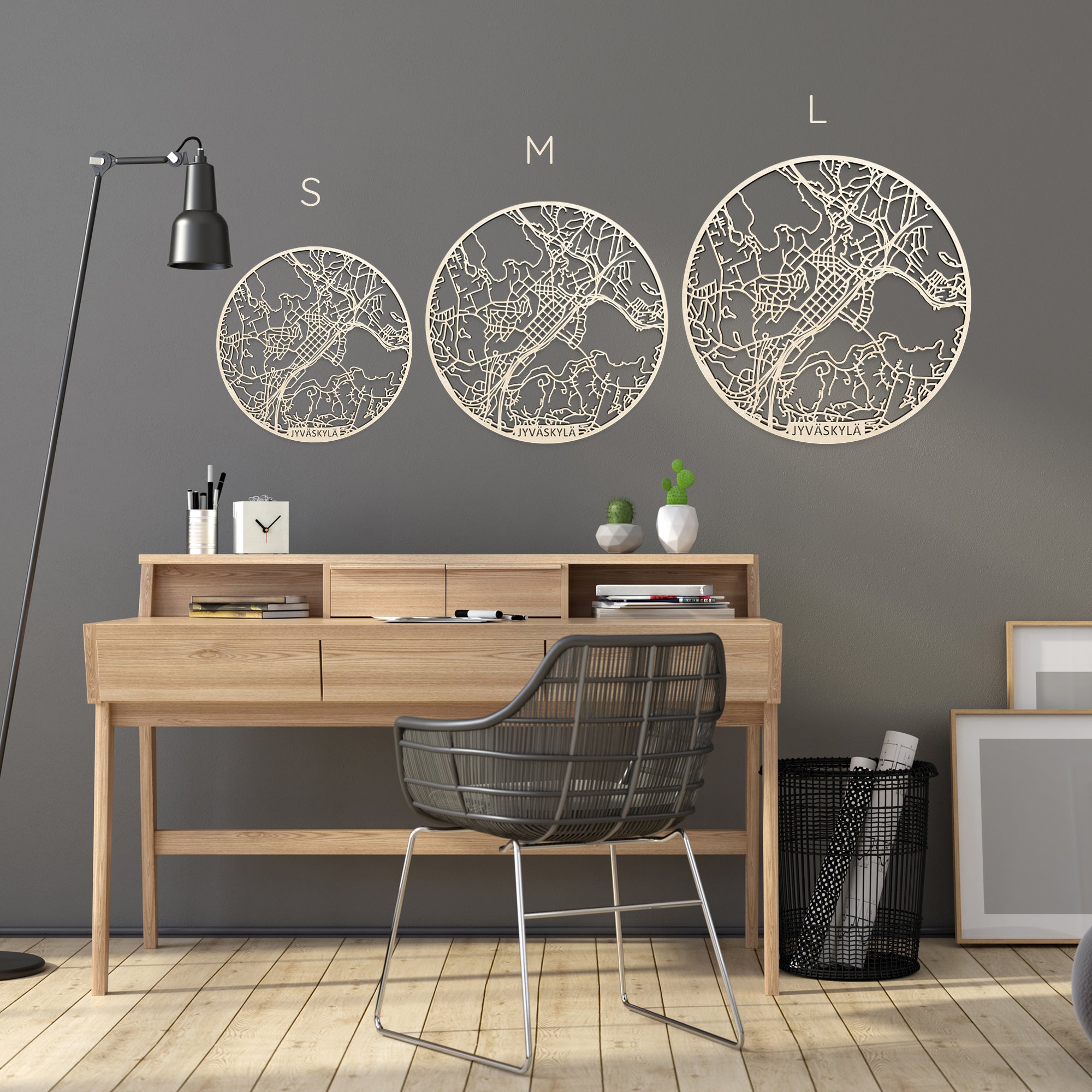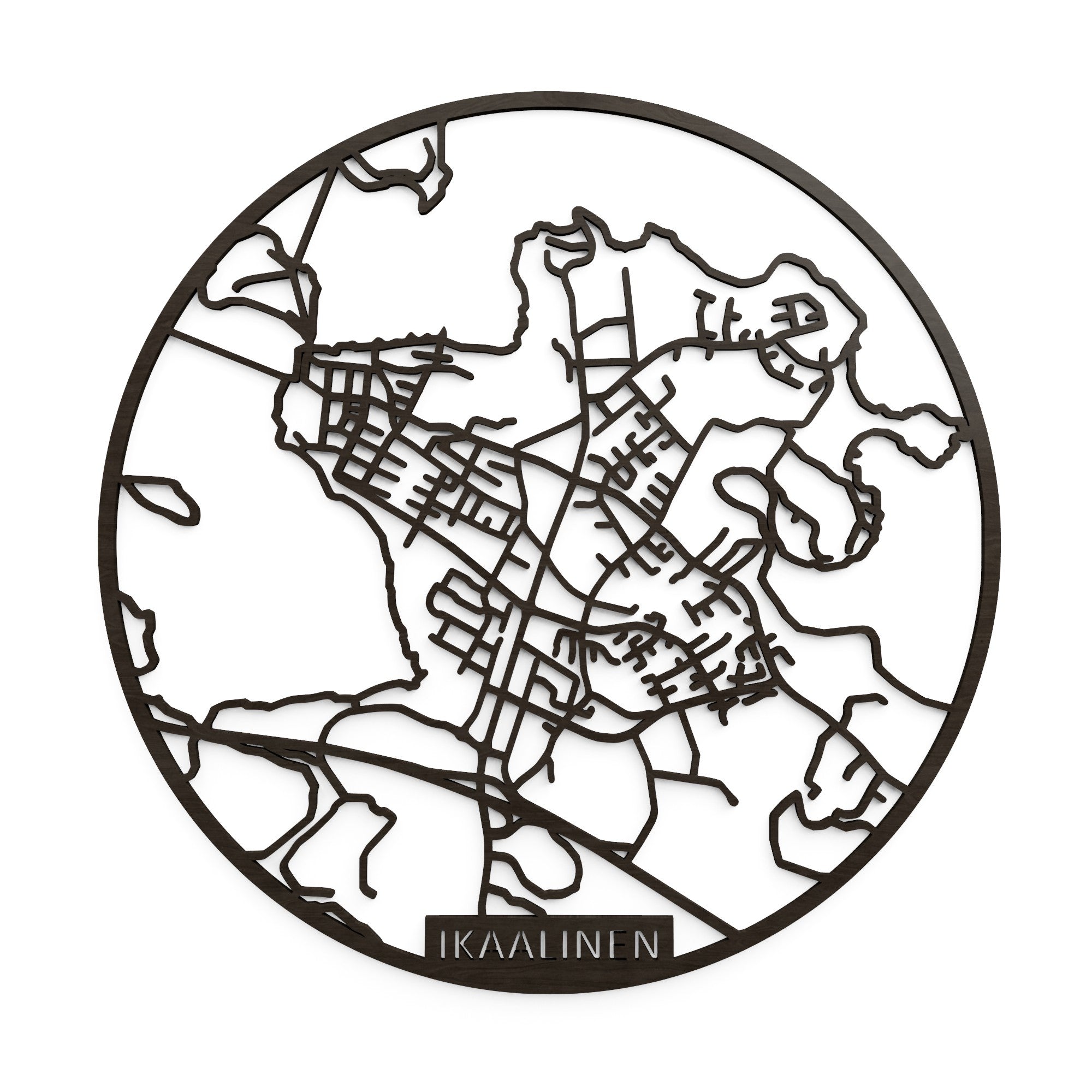 Toutes les cartes en bois sont réalisées dans notre atelier en Finlande. Vous pouvez choisir entre le contreplaqué de bouleau teinté naturel ou noir. Les blocs ont été découpés du bois, de sorte que vous pouvez voir le mur derrière la carte. Cela rend l'œuvre légère et élégante pour n'importe quel intérieur. Chaque carte est soigneusement finie à la main et emballée dans une coque en carton durable. Instructions de montage mural incluses.