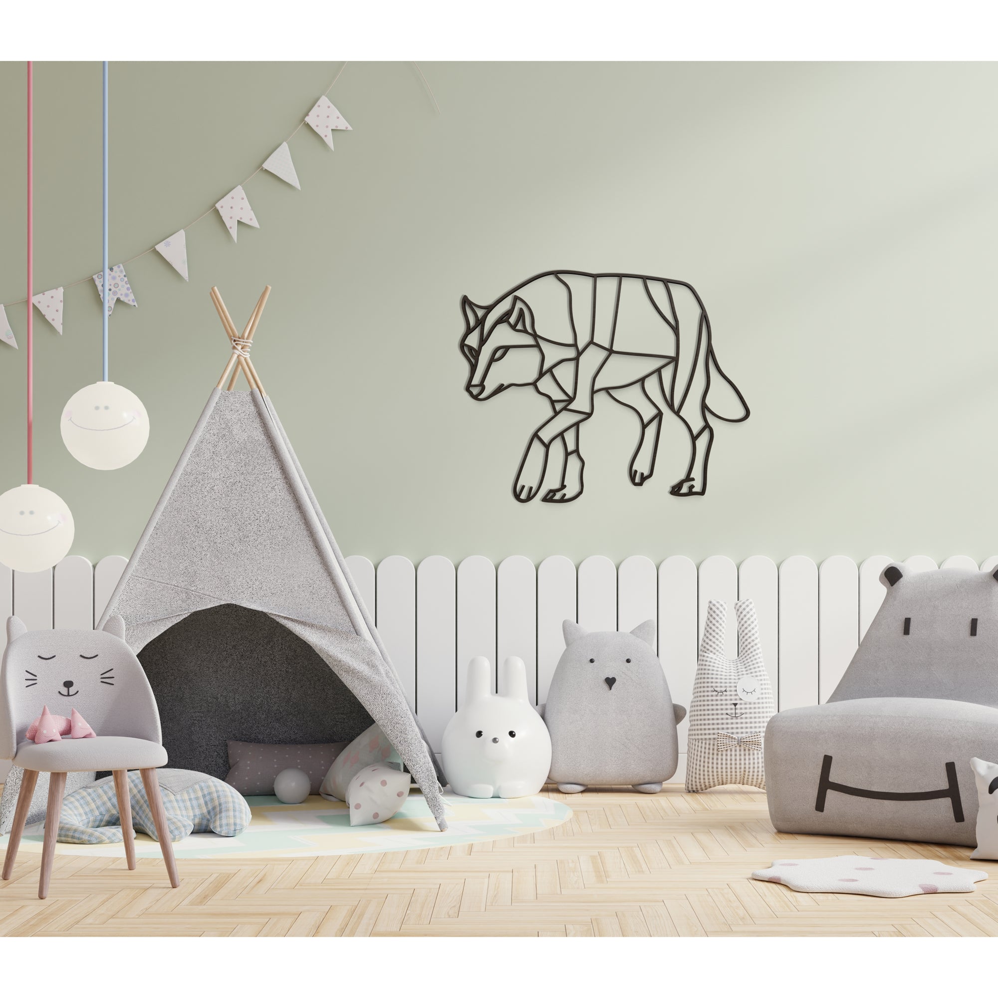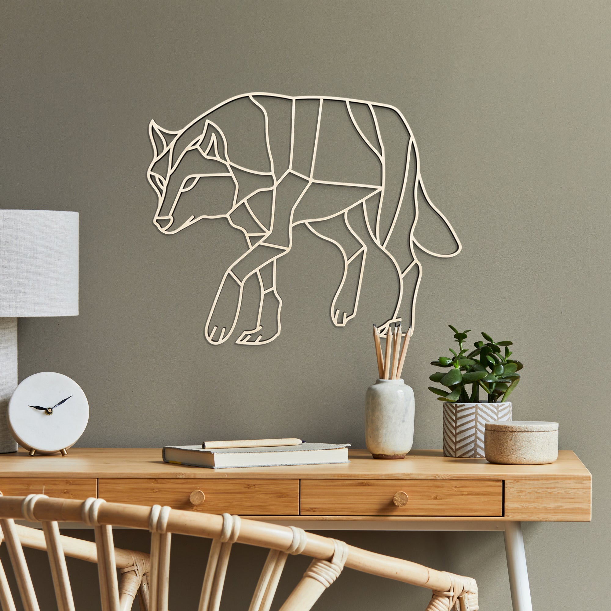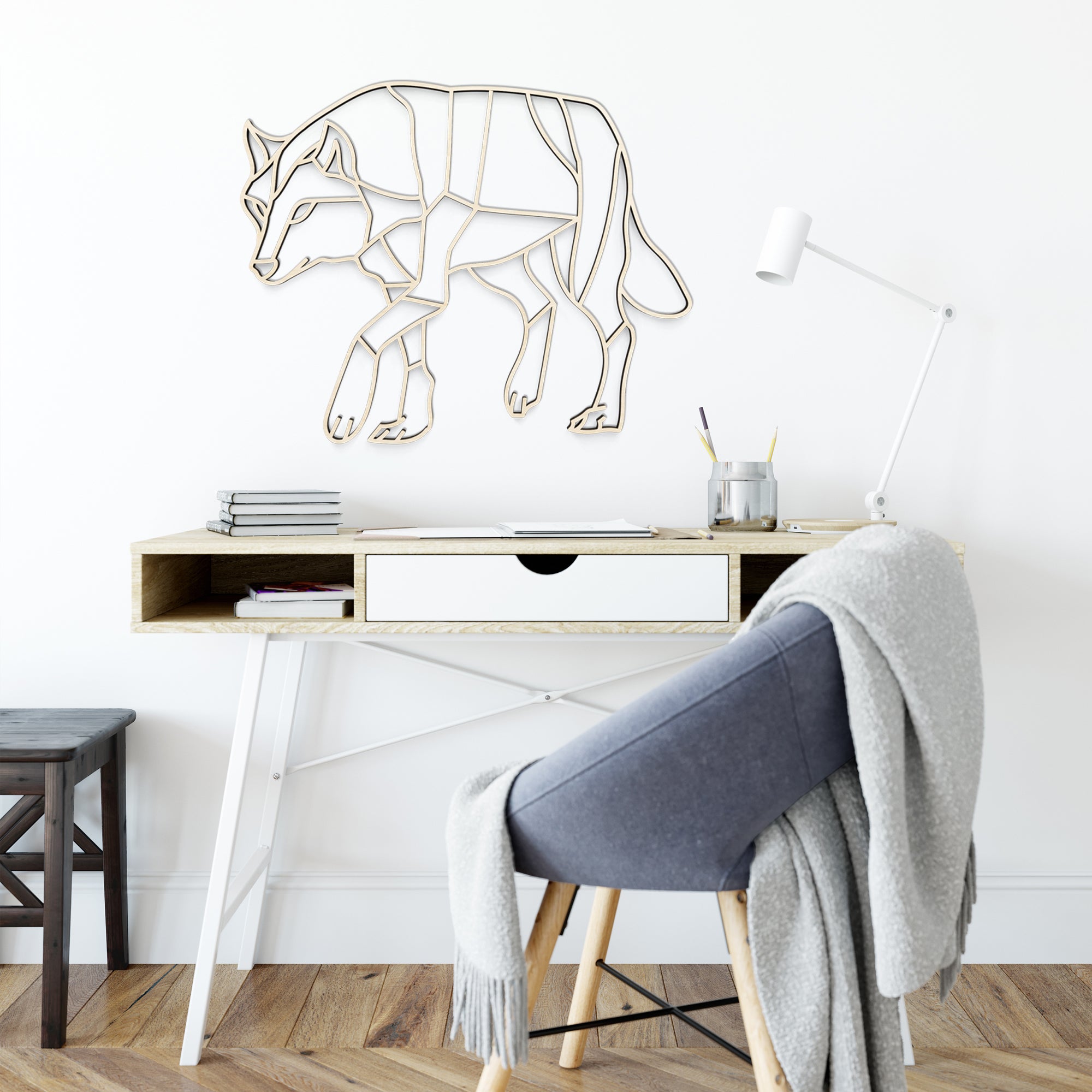 Cette œuvre murale capture le charisme et la dignité silencieuse du loup. La décoration murale en bois apporte chaleur et légèreté au mur et s’intègre harmonieusement dans un intérieur inspiré par la nature.